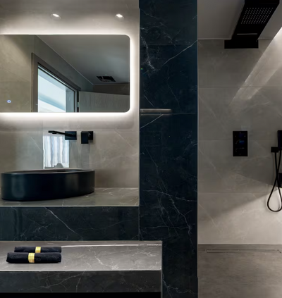Every suite boasts its own serene ambiance, while the villa’s open, sun-drenched living spaces blend natural stone accents with contemporary style. Step outside to your private paradise: an exclusive pool and a soothing jacuzzi overlooking the turquoise horizon — the perfect setting for tranquil mornings and unforgettable sunsets.